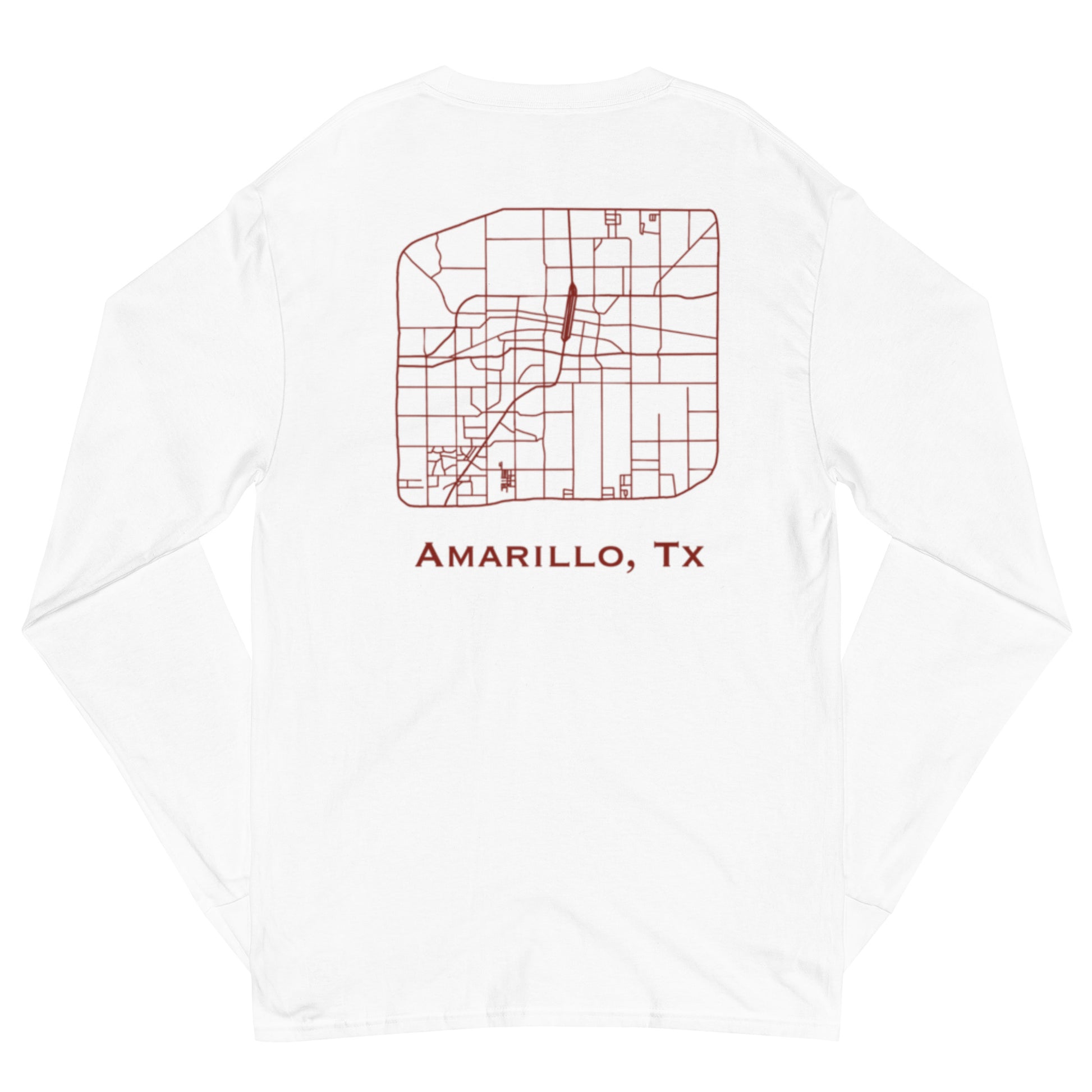 Soft cotton fabric and relaxed fit that allows you to wear the shirt on its own, or layer it with your favorite jacket. Long Sleeve Tee of the Amarillo Map for those Amarillo loving people!